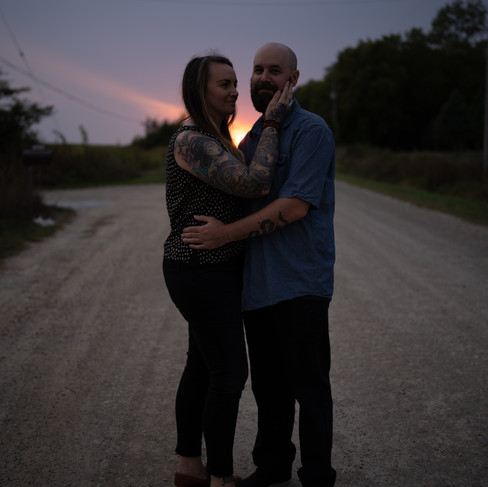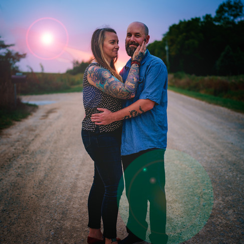 While doing this family session, we had an unfortunate incident with the golf cart tire, which left us stranded a bit far from the house, no worries though, we just hoofed it. That meant that the light was fading very quickly, but it was so gorgeous and I didn't want to miss out on an epic opportunity to photograph these two love birds. These two are childhood friends that connected in adulthood. Aww. Anyway, with the dwindling light I wasn't focused on the power lines. I was able to remove them in photoshop and add a lens flare, because I was feeling extra that day. I 100% love the end result though!
