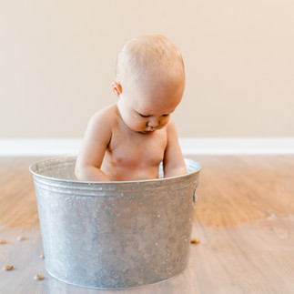 After exploring outside of the tub for a few minutes, we decided to put Oaken inside the tub. This is the only time during the session that he made any fussing. He just wasn't a fan. No worries, I grabbed a few shots and we got him out in about three minutes. It took longer to clean up the spilled milk than it did to keep him in the tub. I am a firm believer in not forcing a kid to do something they are definitely not into, just for the sake of a photo. Pictures of crying kids aren't cute anyway. I'd much rather have a pleasant session than edit a handful of crying baby photos.