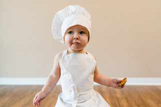 I always like to start out with the babies (one year olds are still babies--fight me) exploring the props. With Oaken I just had the glass cookie jar (the same one I used in Dotty's candy session last year) on a little stool. Oaken was decked out as the cutest little baker. Apron and hat were from the same set I used for Brax even! That little chef set has gotten a lot of mileage out of it.