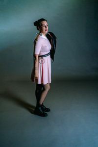 So, what was the point of this experiment? Well, I challenged myself to create three unique looks based off one simple dress. I changed the entire photos by adding layers (jackets, sweaters, jewelry) and brought in texture. I changed my hair style from a wig, to straight, and even space buns. I swapped out sneakers, to heels, to combat boots. If I would have added a scarf, I could have concealed the collar of the dress completely.
