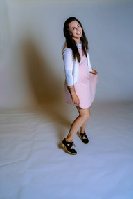 I challenged myself to use one dress and style it three different ways to create three unique looks. The dress I chose was a light pink fit and flare dress with a white collar off Amazon. I toyed with going with a long-sleeved black dress, but that was giving me Wednesday Addams vibes, and I wanted the dress to be versatile. Photo pictured is from Amazon listing.